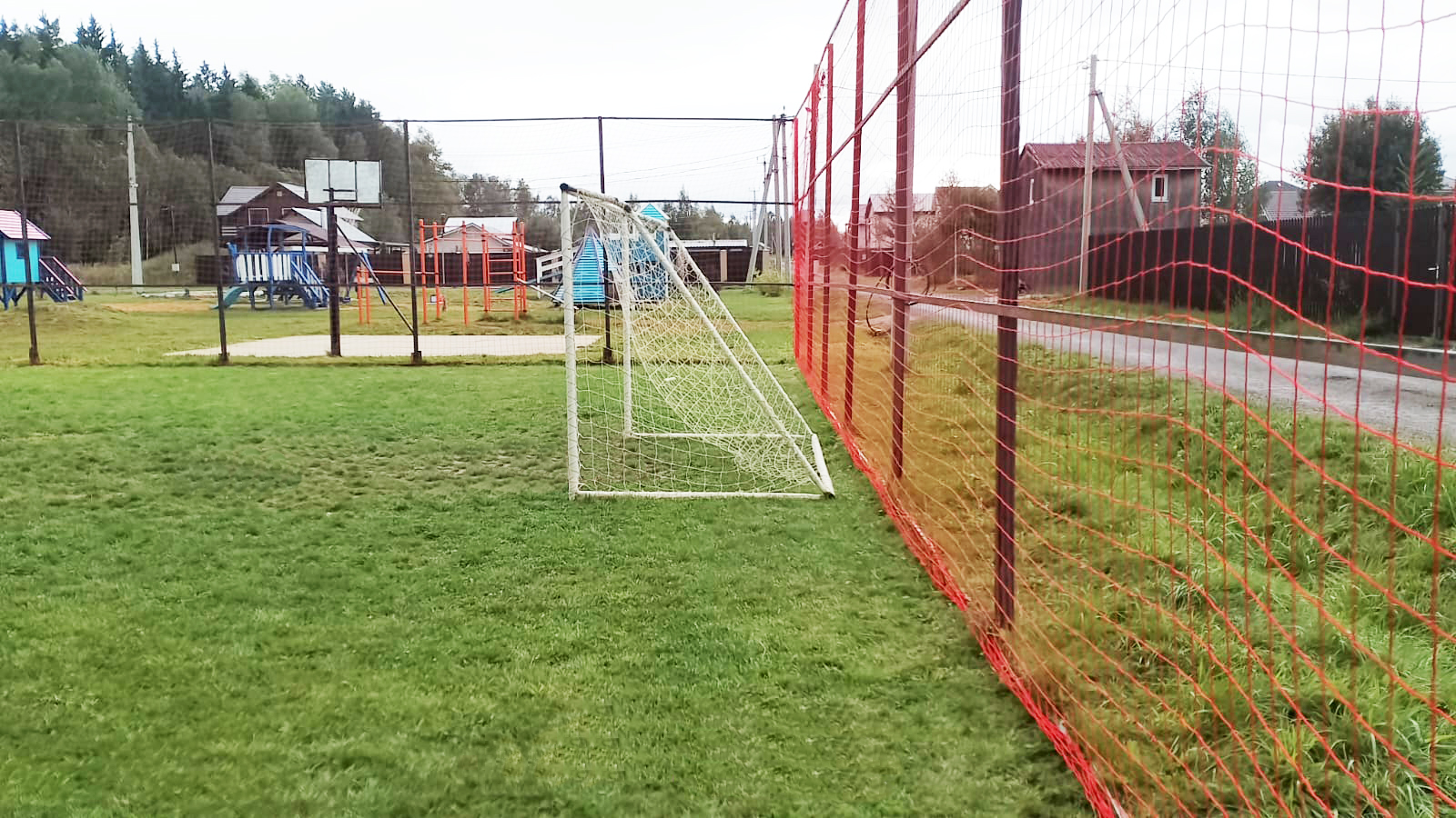 Восстановлено сеточное ограждение на футбольной площадке в посёлке Семейный.